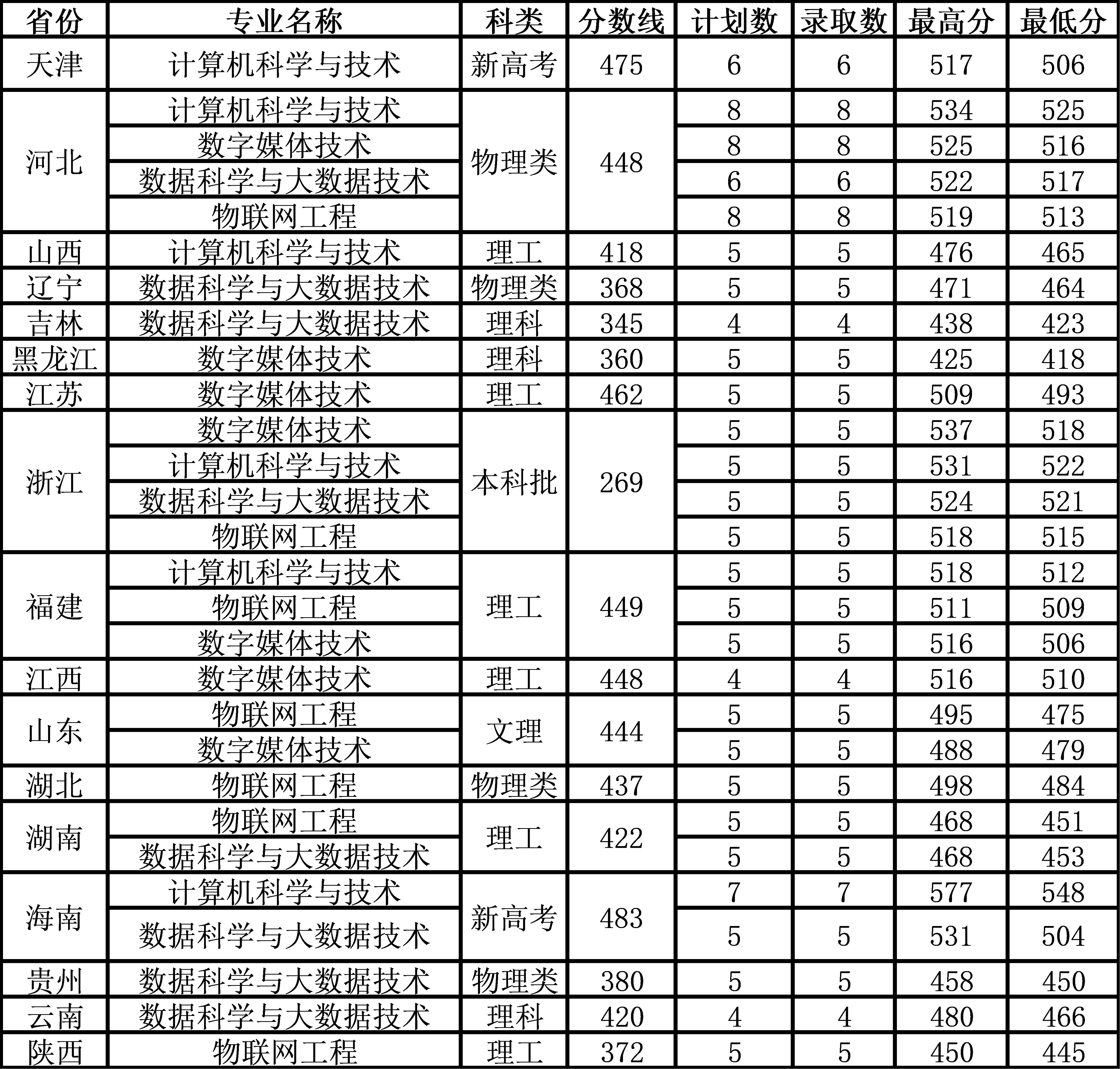 三、计算机与数据公司2024年外省本科各专业录取统计
