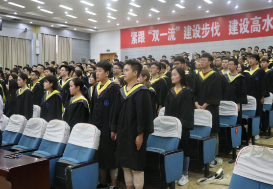 最后,在校歌的音乐伴奏下,全体起立,合唱校歌。2019届毕业生毕业典礼暨学位授予仪式在歌声中落下帷幕,望公司2019届毕业生们在新的人生征程中,乘风破浪,扬帆远航。