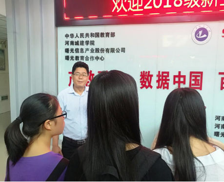负责讲解的杜小杰老师带领着全体新生参观了实验室,对教学科研平台做了详细的讲述,专业作品的展览更是让计算机新生们发出了阵阵惊叹声。此过程中新生们争先恐后的提出自己的疑问,杜老师也耐心的向同学们解答。