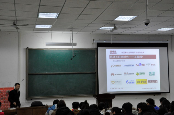 (图为陶经理在给同学们讲述互联网+方面知识)