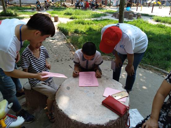 此次活动于6月29日在新华区井营村井青社区进行,主要以关爱未成年人的学习、生活、心灵状况为主题,旨在让他们健康成长,志愿者通过与孩子们聊天,谈心来了解未成年人的思想,心灵状况。同时,志愿者也通过自身的经历,在未成年人如何处理生活中的琐事以及解决学习上的问题给出了建议。尤其现在家长们对孩子们的早期发展、学习生活、心理健康等重视程度越来越高,为了让他们能在未来竞争激烈的社会立足,让他们学会摆脱依赖、学会在集体中成长、乐于助人、共同进步,志愿者通过开展各种活动让孩子们认识如何用心理途径建构团队,如何培养团体凝聚力与团体信任感,强化团体成员的自我价值感、促进成员间的互助合作、激发成员的思考力与创造力。活动接近尾声时,孩子们与志愿者合影留念。