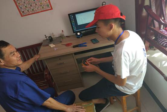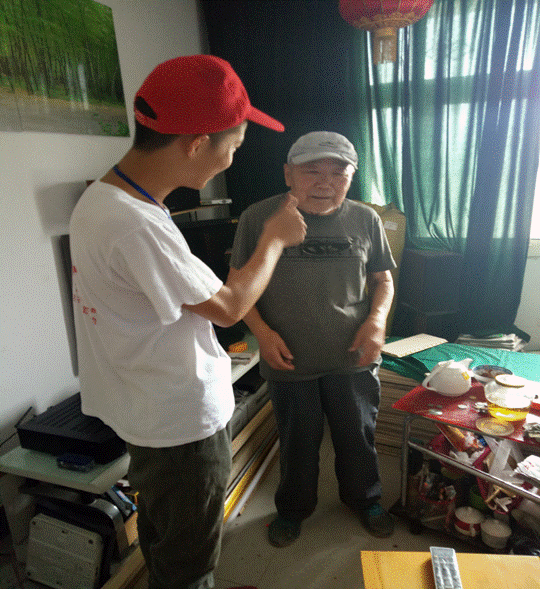 (图为老人向志愿者讲述历史故事)