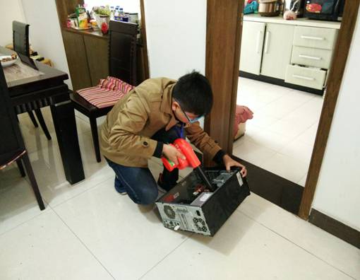 起初,各个部门的活动人员都已经在校团委楼前集合完毕,负责人向志愿者们讲明了活动目的,志愿者们将横幅拉好,各部门也进行活动前的准备。活动开始不久,便有老师打来电话,请计算机站的志愿者们前去家中给电脑进行检修和灰尘清理。志愿者们耐心地为老师解释有关电脑方面的问题,用自己的专业技能顺利解决老师们的电脑问题。公寓中的李老师告诉我们,家中的电脑修得好用了,也给自己的工作带来了很大的便利。