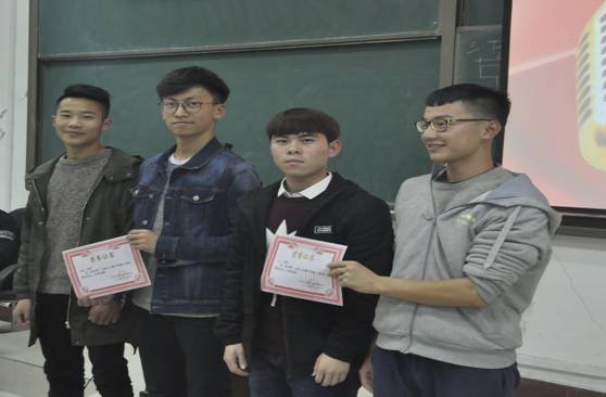 活动前期秉承公平公正的原则积极进行宣传,参赛选手于11月16日晚通过抽签决定了比赛的出场顺序。活动当天,参赛选手六点30分准时到场,经主持人简明扼要介绍流程和规则后,比赛正式开始。比赛共分为自我介绍,模拟主持,总结陈述三个部分。选手们用洪亮的声音、生动的语言阐述了自己对主持人独特的理解。虽然诠释方式风格迥异,但每个人均照应主题,出发点和落脚点都表现出强大的主持表演能力。表演完毕后,评委根据选手的临场表现和综合实力进行打分。经过激烈角逐,大赛确定前三名人选,并为其颁发奖状及荣誉证书,至此活动圆满结束。
