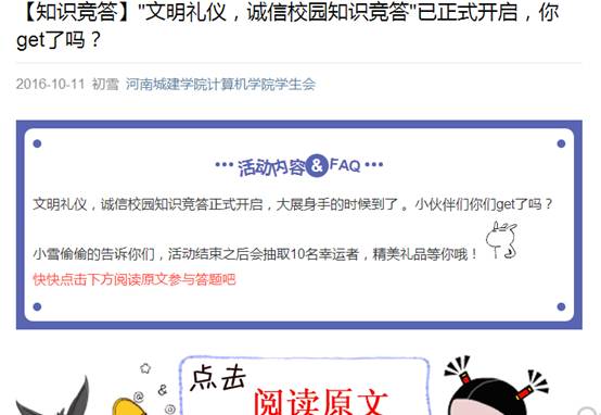 (图为“文明礼仪,诚信校园”知识竞答主页)