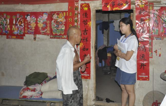 (志愿者亲切询问张大爷的生活现状)