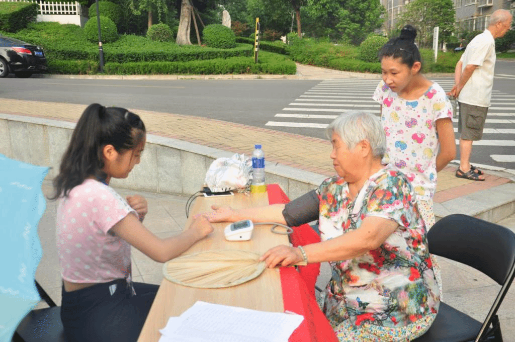 (图为三下乡活动中志愿者为老人测量血压)