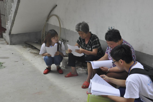 (图为志愿者通过调研问卷的形式了解当地互联网+)