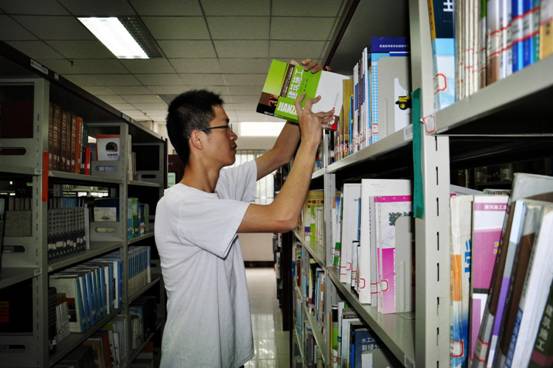 (图为志愿者查看建筑类的书籍)