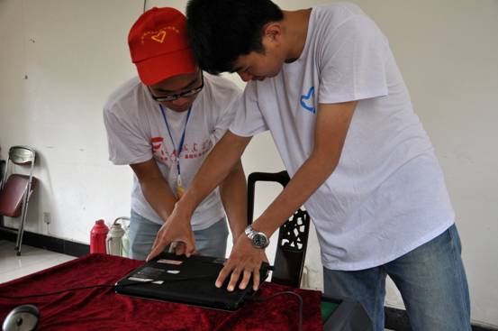 (图为志愿者义务维修电脑)