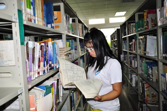(图为志愿者翻阅书籍材料)