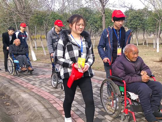 志愿者们为老人带去了水果及点心,并帮忙打扫老年公寓内的卫生,擦玻璃、拖地、整理衣服等忙的不亦乐乎。打扫完,同学们陪老人们说说家常话、讲讲笑话,给老人们捶捶背。随后,志愿者们推着行动不便的老人来到福寿院旁的生态园散步、聊天,感受春日新景。