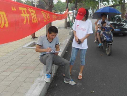 7月8日beats365计算机科学与工程公司参与此次暑期社会实践活动的10余名同学代表,由队长带领,按照往常的时间,于8点,到达平顶山市鹰城广场,开展暑假社会实践关于计算机使用常识的调查宣传活动。