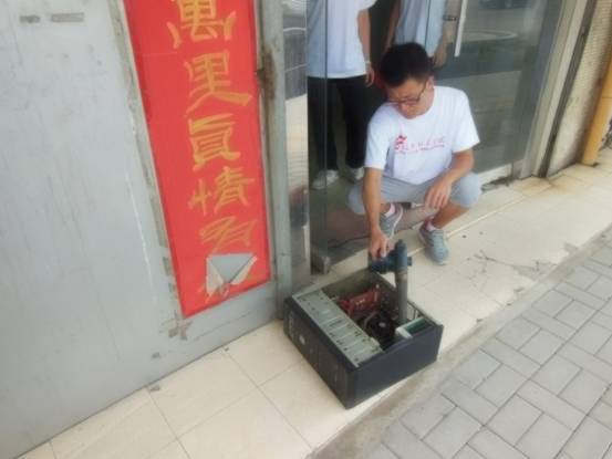 我们的活动吸引了很多过路的市民,其中在和日报社记者的交流中,得知他们日报社的电脑最近老是会出现一些小故障,于是我们的志愿者带着修电脑的工具,随着记者来到了日报社办公室。