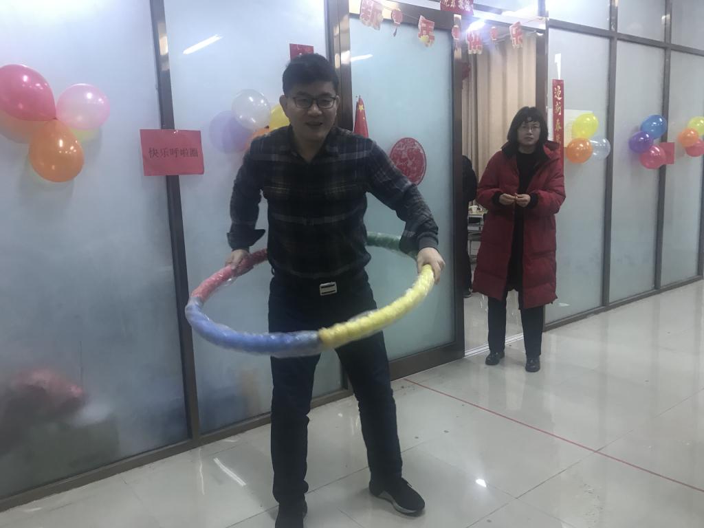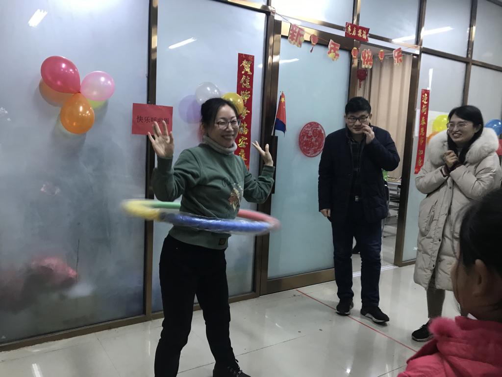 联欢会设置了座谈会和游戏环节。座谈会上,大家互相交流、踊跃互动,回顾过去一年工作成就,在总结中展望未来。游戏环节中,教职工们积极参与、各显身手,在吹蜡烛、套圈、蒙眼贴五官、快乐呼啦圈等游戏中都有精彩的表现。活动现场一片欢声笑语,气氛十分活跃。