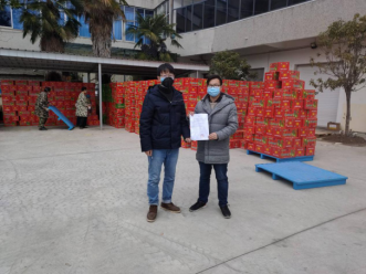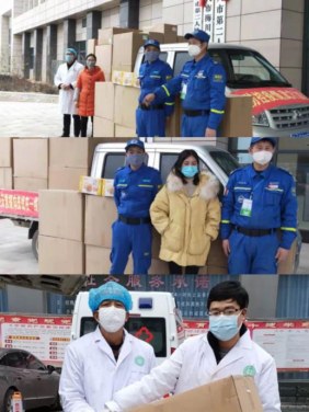 医护人员与配送物资的合照