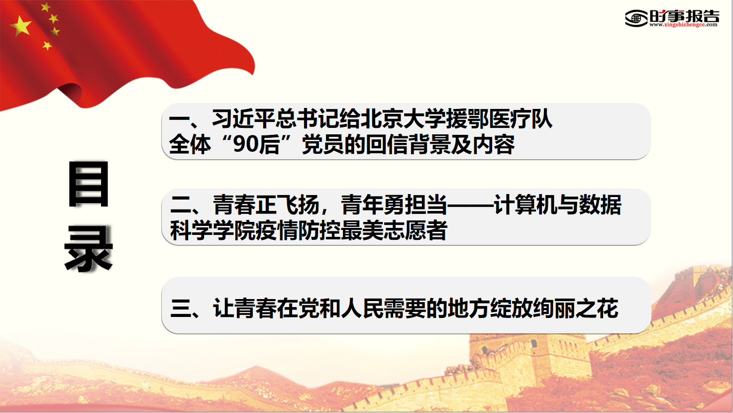 入学教育上,张星对大家进行了宗教知识教育,引导同学们树立马克思主义宗教观,坚定正确的政治信仰。随后,张星围绕“让青春在党和人民最需要的地方绽放绚丽之花”这一主题开展了弘扬伟大抗疫精神教育,鼓励大家牢记嘱托,勇担使命,作为新时代青年,要向这些援鄂医疗队“90后”党员看齐,向身边的榜样看齐,要以他们为榜样,勤勉上进,奋发成才,既要学好专业、练好本领,也要学习他们勇担使命,不畏艰险的精神,牢记嘱托,作堪当大任的时代新人,做一个有家国情怀、社会担当的人,做一个对社会、对国家、对人民有益的人。让青春之花绽放在党和人民最需要的地方。