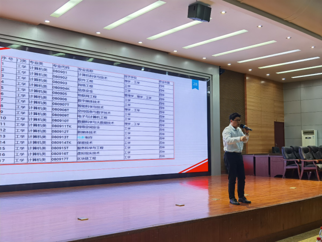 大会开始前,张星对开启新的人生起点的各位新生们表示恭贺。接着,何宗耀以“数据:赋能新时代”为主题,围绕“我从哪里来、我是谁、我将走向何处”这三个问题讲述了计算机技术的发展史。随后,又通过数据分析,讲解了互联网发展史、全球大数据应用、软件定义、区块链、数字孪生等,并对计算机行业的现状和发展进行了简要介绍。引发在场同学们计算机专业的浓浓兴趣。