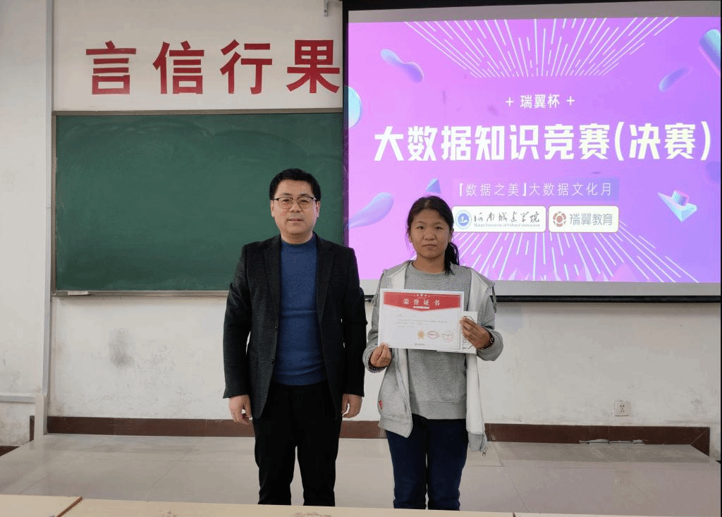 beats365副经理张俊峰、数据科学与大数据技术系主任郝伟、beats365河南省校园智慧应用工程研究中心主任薛冰出席了本次颁奖典礼,并为获奖选手颁发证书及奖品。