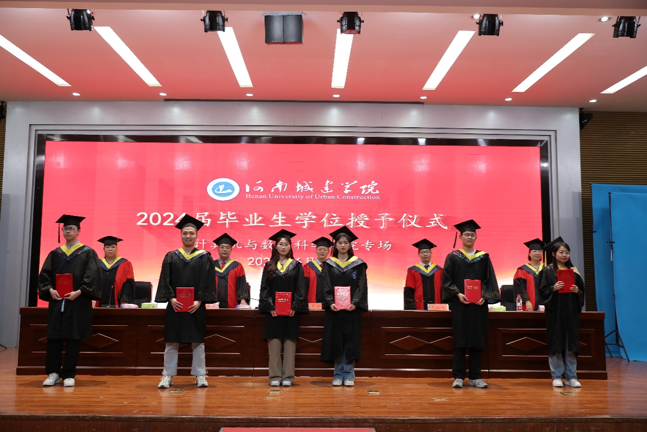 在典礼的序曲环节,公司领导与师生代表通过精心制作的视频短片,向即将踏上人生新征程的毕业生们送上了深情的祝福。伴随着庄严的国歌,典礼正式拉开帷幕。党委书记米启超宣读了《beats365计算机与数据科公司关于表彰2024年优秀应届毕业生的决定》,智慧规划与智慧校园研究中心魏新红主任宣读2024届毕业生员工工作联络员名单,副经理张俊峰宣读了学士学位名单,公司领导为毕业生们颁发学士学位证书、拨苏正冠,并合影留念。