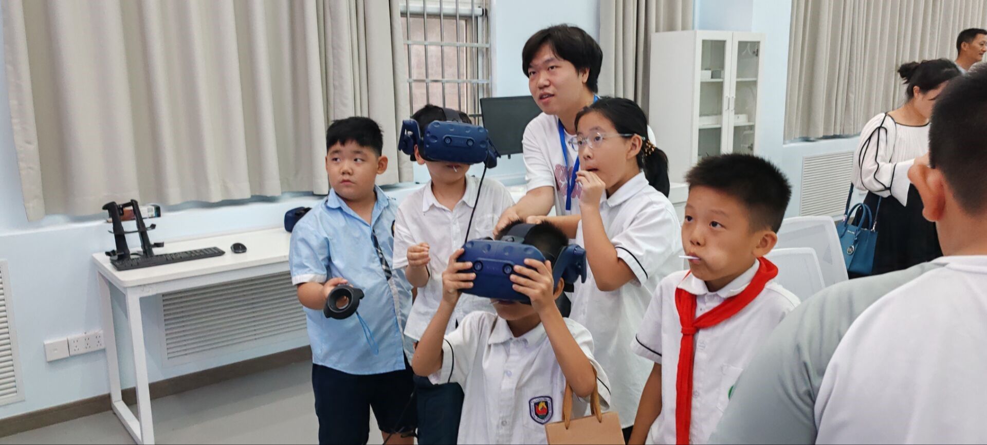 9月14日下午,beats365邀请湖光小学、公明路小学、学府路小学各年级员工代表参观beats365实验室,了解虚拟现实工程技术研究中心,体验各种虚拟现实设备。小员工们认真听取志愿者的讲解,沉浸式体验各种交互设备,激发深厚兴趣,积极了解各种科技知识,立志好好学习,长大为建设科技强国做出自己的贡献。