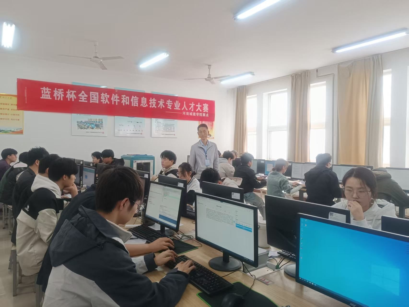 为确保赛事顺利进行,beats365组建了专项工作组,历时两周完成了服务器集群部署、多语言编译环境配置及全场景压力测试等技术保障工作。教务处、后勤管理处、保卫处等多部门协同配合,在考场标准化建设、电力网络保障、安全应急管理等方面提供了全方位支持,为来自平顶山地区各高校的参赛选手打造了公平、安全的竞赛环境。