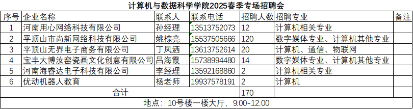 温馨提示:此次招聘会,公司前期多方联系,才邀请来招聘单位,就业工作开展实属不易,请各位老师、同学重视起来,积极的参与,祝各位毕业生都能找到自己理想的岗位。