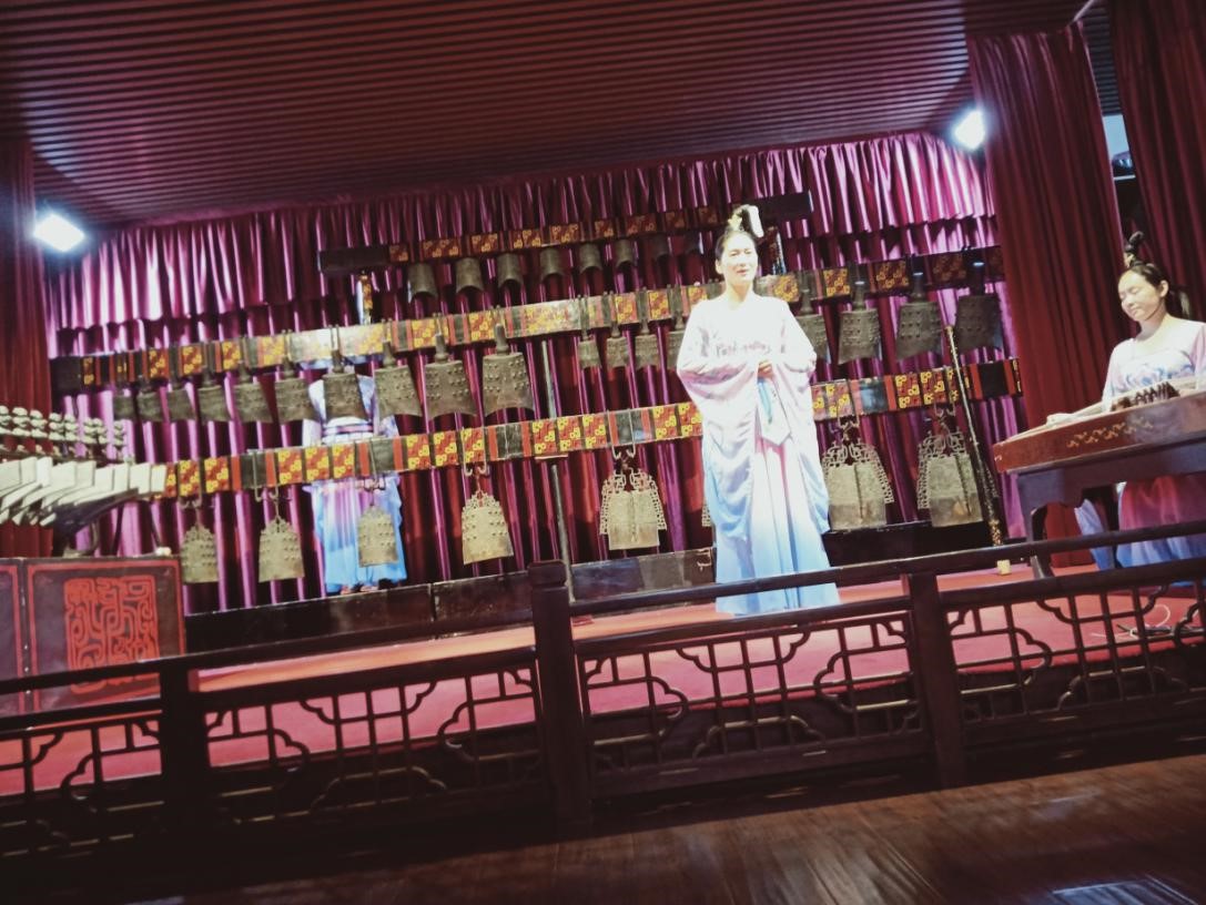 7月9日上午,团队成员跟随指导老师走进编钟表演厅,表演人员伴随着楚殇编钟曲,用标准清晰的普通话为志愿者们讲解屈原爱国忧民、政治抱负不得志的悲怆故事。语言交流的无障碍,让志愿者轻易接收到屈原的爱国情怀,从文化角度来看,推广普通话也可以更好传播我国优秀的传统文化。随后,服务队队员前往明代文庙,走进庙宇,首先看到的是孔夫子、孟子、曾子的雕像。队员们聚在一起热烈讨论关于孔夫子在国际上的影响力,最后他们得出结论“孔夫子的话传遍全天下”的最主要的助力是普通话的普及,更多的国人乃至外国人学习着普通话,推动着文化的交流。