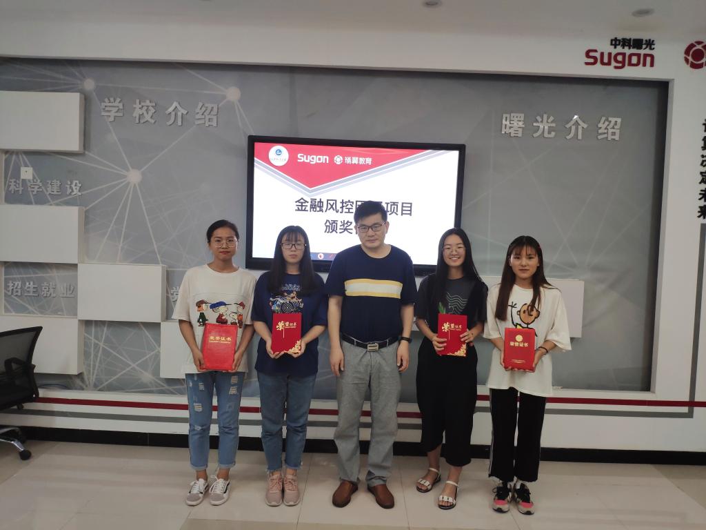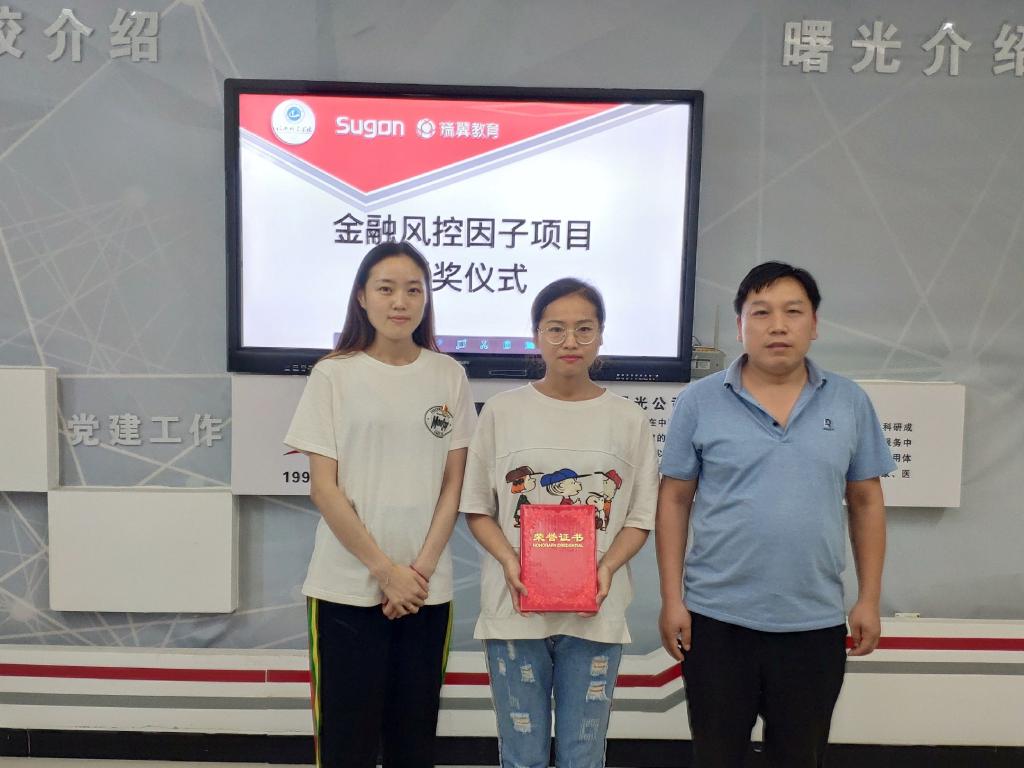 公司副经理刘荣辉博士。大数据创新中心张敬普博士,团总支书记、学工办主任王梦琪老师为曾黎同学等同学颁奖,并勉励他继续采用在实践中学习的方法,更多地参与到校企双方合作推出的实战性项目中来,提升技术能力,锤炼个人技术。