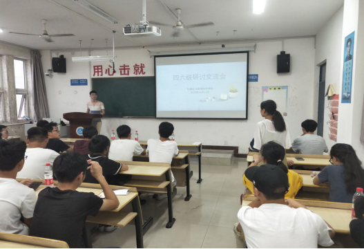 首先,由大三计科的薛东同我们讲解了四六级必要性,以及一些学习方法,比如多做试卷,四六级考试中单词储备量尤其重要,还同我们讲解了一些考试注意事项,答题卡的填涂等。郑雪莹讲了一些四六级速成的知识和卷子的分值、选句填空通读上下文的重要性以及一些关于试卷做题顺序方面的问题。骆江南重点讲解了一下关于作文方面的问题,包括单词的替换,句子如何通读正确等等。同时,对于有关四六级问题的同学,学长学姐都给出最好的回答。