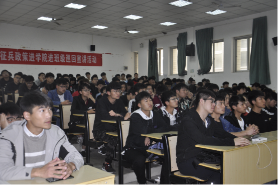 该宣传活动分为三个环节:观看征兵视频、征兵问题解读和征兵经济补助细则。宣传会以慷慨激昂,热血沸腾的宣传视频开场。随后王艳杰老师向同学们介绍了此次宣传会的目的,详细为同学们解读征兵的条件和征兵优惠政策、军旅生活、退役之后的选择。其中重点讲述了退役之后的选择问题,比如可以选择继续部队发展,如果回校就读则能获得学业优升、学费补偿等优势,除此之外还能获得经济补助、退役金。会议最后,王艳杰老师提到,希望同学们能用自己的力量为祖国明天的发展和安全作出努力,积极参军,保家卫国,大力发扬爱国主义精神,关心支持国防建设,立志报效祖国,把参军入伍当做锻炼磨砺提升自己的大舞台。