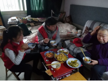 当天上午,志愿者们前往社区超市,给周正爷爷买了些蔬菜、牛奶和面包。到了爷爷家中,志愿者们主动帮爷爷择菜、洗菜、做饭,然后和爷爷一起共进午餐。餐桌上,爷爷和志愿者们聊起过年回家的趣事,并给志愿者们夹菜。在活动过程中,周正爷爷拿出了自己新买的缝纫机,和志愿者们一起研究如何使用还教志愿者们如何用杠铃锻炼身体,并嘱咐要多锻炼多运动。活动的最后,志愿者们与爷爷告别,爷爷赠予了他们几本书作为新年的心意。