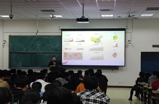 李阳的讲述声情并茂、幽默风趣,他从大数据的课程结构、能力要求、培养目标等方面为同学们详细讲解了大数据专业的应用前景。同学们认真聆听,现场气氛十分活跃。