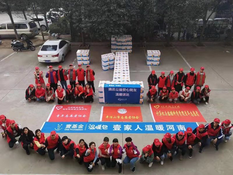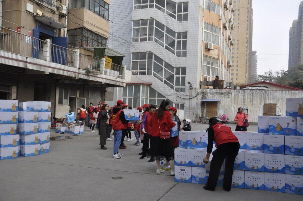 志愿者们分装暖心包裹