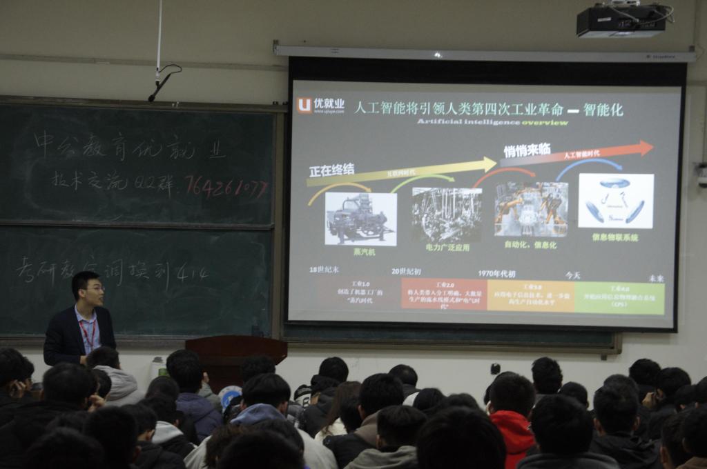 讲座开始,崔老师进行了简单的自我介绍,其幽默的讲话风格活跃了课堂气氛,激发了同学们的兴趣。接着讲座步入正题,崔老师对人工智能的内涵进行了介绍,他强调:人工智能其实是一个很大范畴,一是计算性能取得突破,特别是云计算技术出现,极大的增强了计算性能。二是数据,因为有了性能好的终端后,人们在日常生活、工作、学习中做的事情也是精彩纷呈,这些过程中必然会有数据的沉淀和存储下来。随后,崔老师介绍了人工智能的发展过程,及其发展过程中所经历的重要阶段,阐述了人工智能与人们工作之间的关系,认为尽管人工智能会取代人们的部分工作,但也会衍生出很多新型工作。最后是互动环节,崔老师针对同学们遇到的问题进行了解答,现场气氛十分活跃。