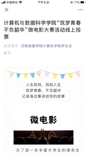 “筑梦青春·不负韶华”微电影大赛网上投票