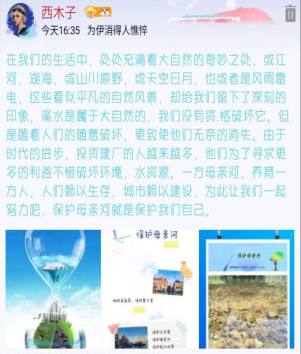 7月15日上午,“保护母亲河,传播绿色环保理念”服务团在各自的QQ空间内发布宣传标语及海报,通过网络传播进行宣传,使更多的人认识到保护河流资源的必要性。
