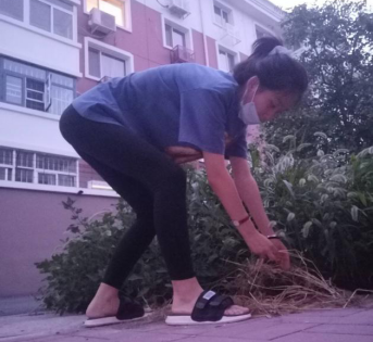 当天上午,新芽志愿服务队成员们走出家门,在自己周边做一些力所能及的志愿服务。比如给辛苦劳作的环卫工人们送水、帮他们打扫卫生、清理社区草坪上的垃圾。虽然这是一些微不足道的小事,但成员们还是从一天的实践活动中感受到了自我的价值。