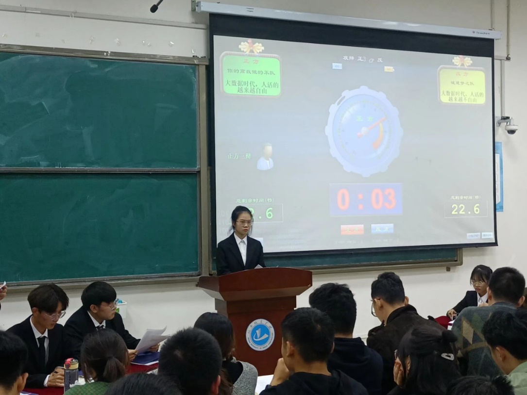 本次比赛分为初赛,复赛,决赛三场。每一场比赛中正反辩手都发挥了优秀的口才与敏捷的应变能力。比赛首先由正反方一变分别进行三分钟的陈词立论,向观众和评委阐述自己的观点。紧接着双方二辩,三辩分别对对方的二辩,三辩进行了攻辩。随后,双方进行了自由论辩。双方辩手各持一词,你来我往,为我们带来了一场口才与智慧上的盛宴。比赛过程激动人心。各班的辩手们配合默契,将比赛带入了一个又一个高潮。台下观众同样是十分激动,掌声不断,给与了辩手一定的肯定。经过一场场角逐,计科二班获得了最后的胜利。物联一班二辩选手张瑞琪同学获得全场最佳辩手称号。