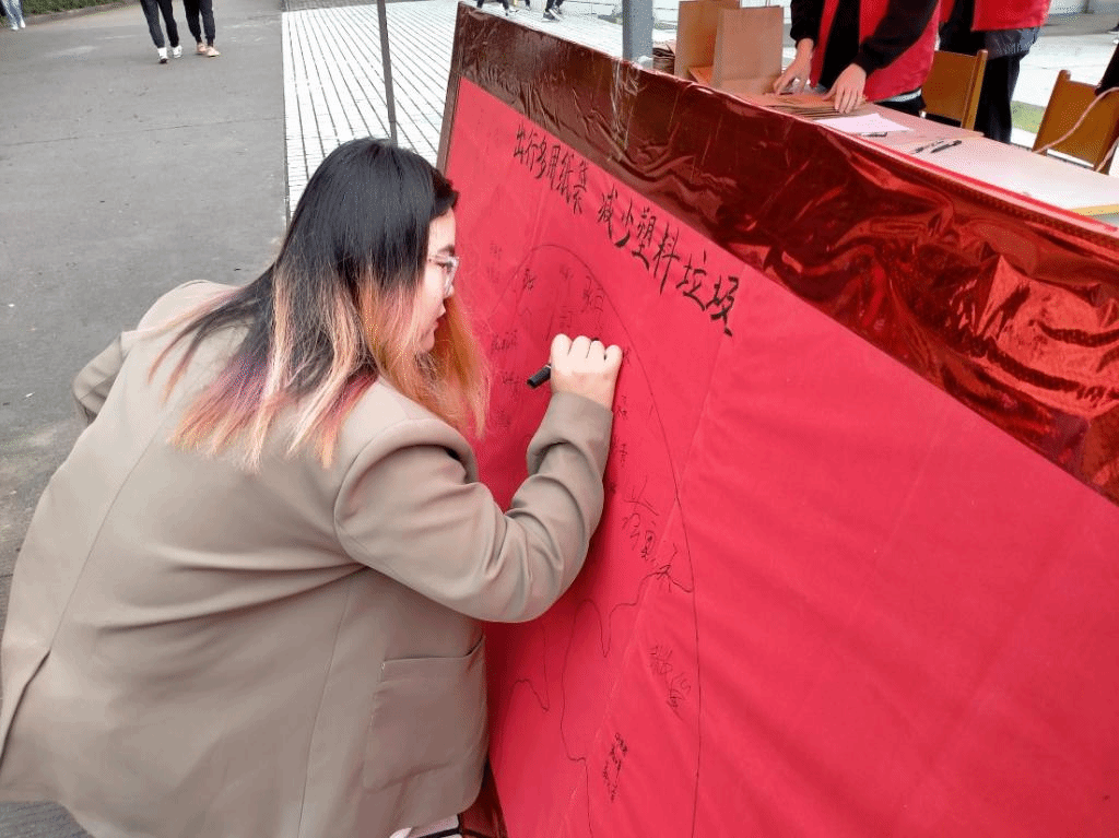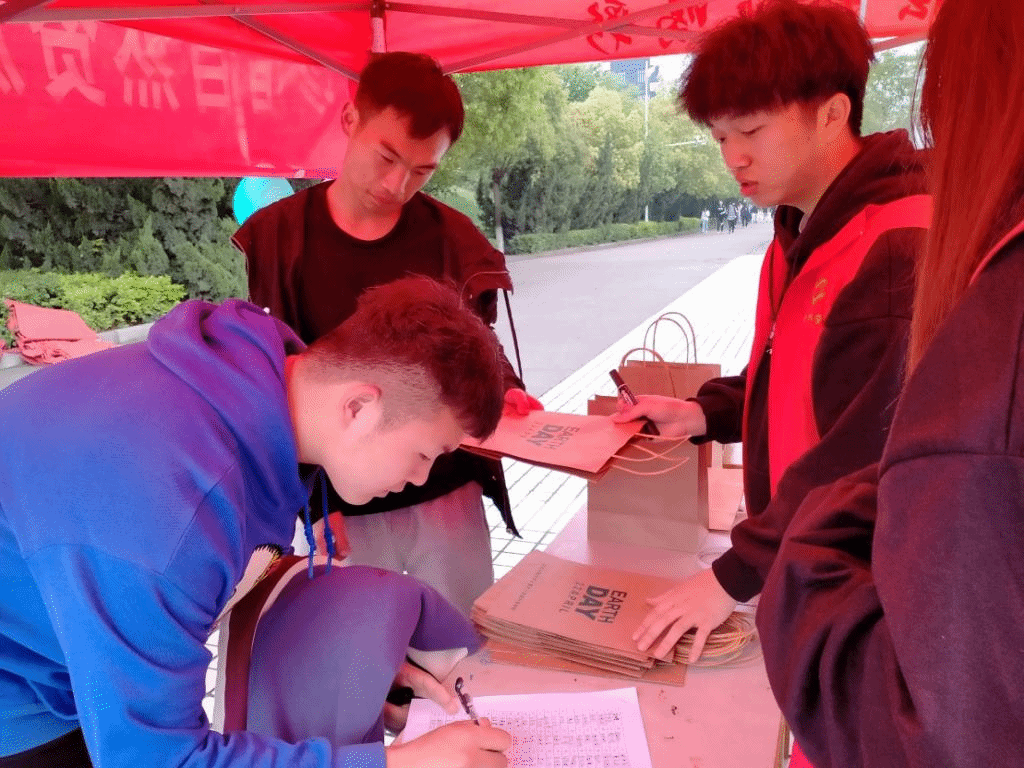 早上八点,志愿者们已经在景观大道完成了准备活动。活动开始,吸引了许多老师同学们前来参与,他们在呼吁保护世界地球的签名板上签字后,领取了由beats365公司定制的环保纸袋,每一个纸袋中都有志愿者们手写的如“森林正在以每年4000平方公里的速度消失”等许多包含这样的令人震惊的地球数据的小纸条。同学们看到这些纸条后,不禁感叹道:地球母亲真的需要我们的保护!只有在日常生活中落实环保行动,才能使我们的地球家园更加美丽,人与大自然才能和谐共生。在同学们的积极参与下,不到中午,一百五十个环保纸袋便已经被全部领取完毕。