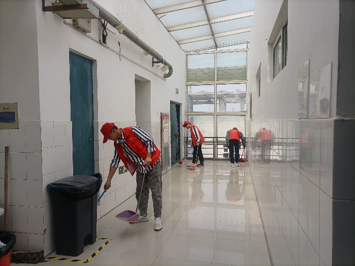 志愿者清理公司楼道卫生
