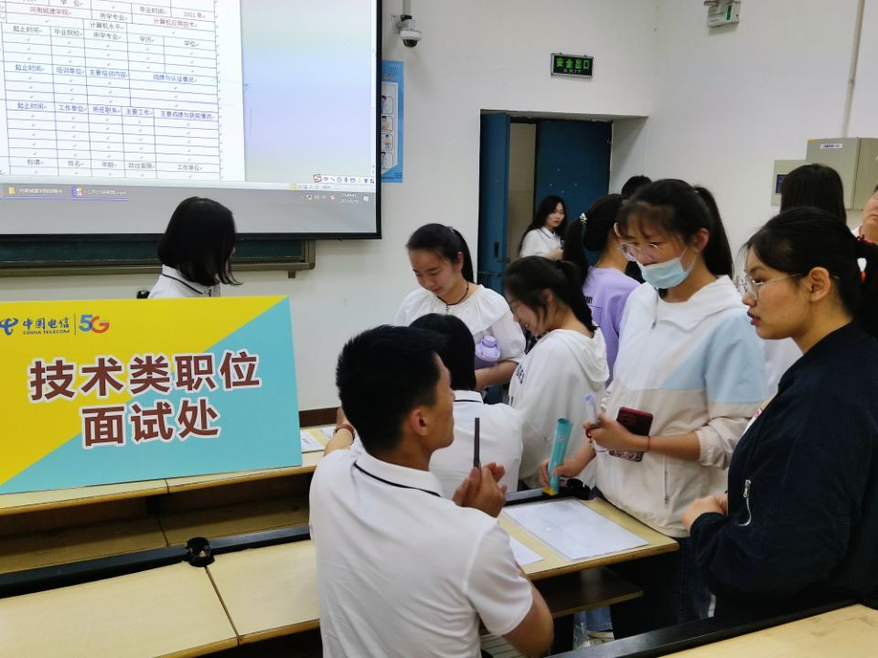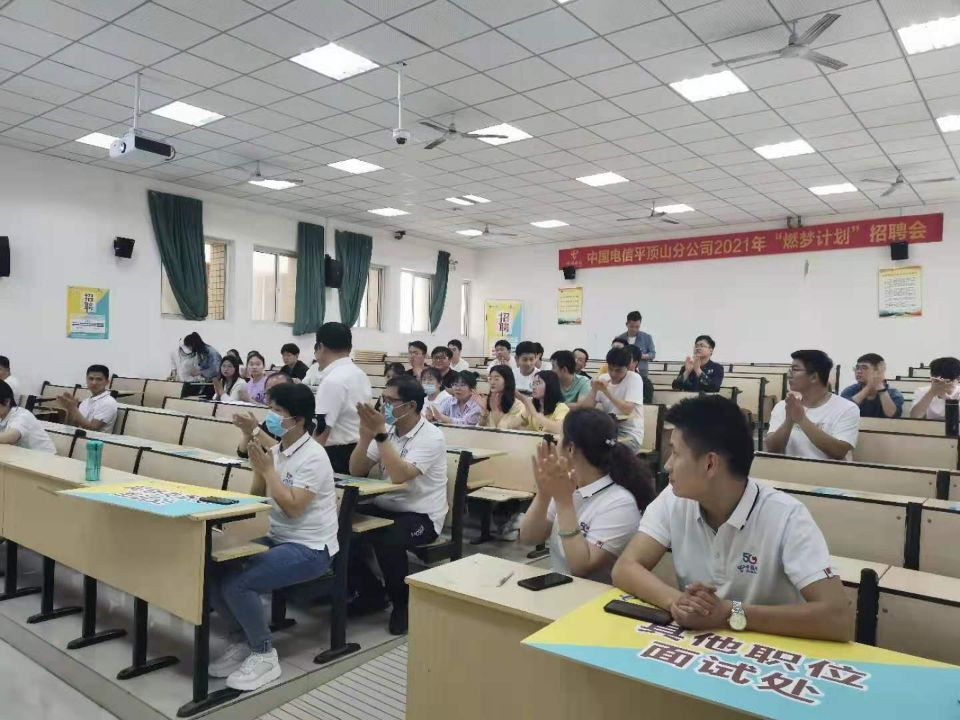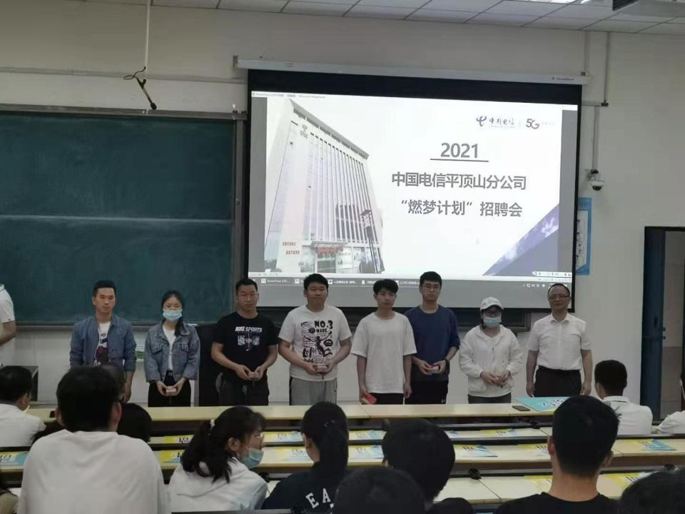 活动开始,同学们热烈欢迎中国电信平顶山分公司优秀员工的到来。他们不仅给公司毕业生带来了优质的就业岗位,也提供了更为广阔的择业方向和选择。他们从行业发展、薪资待遇、价值目标等方面为同学们阐述了中国电信平顶山分公司的优势。