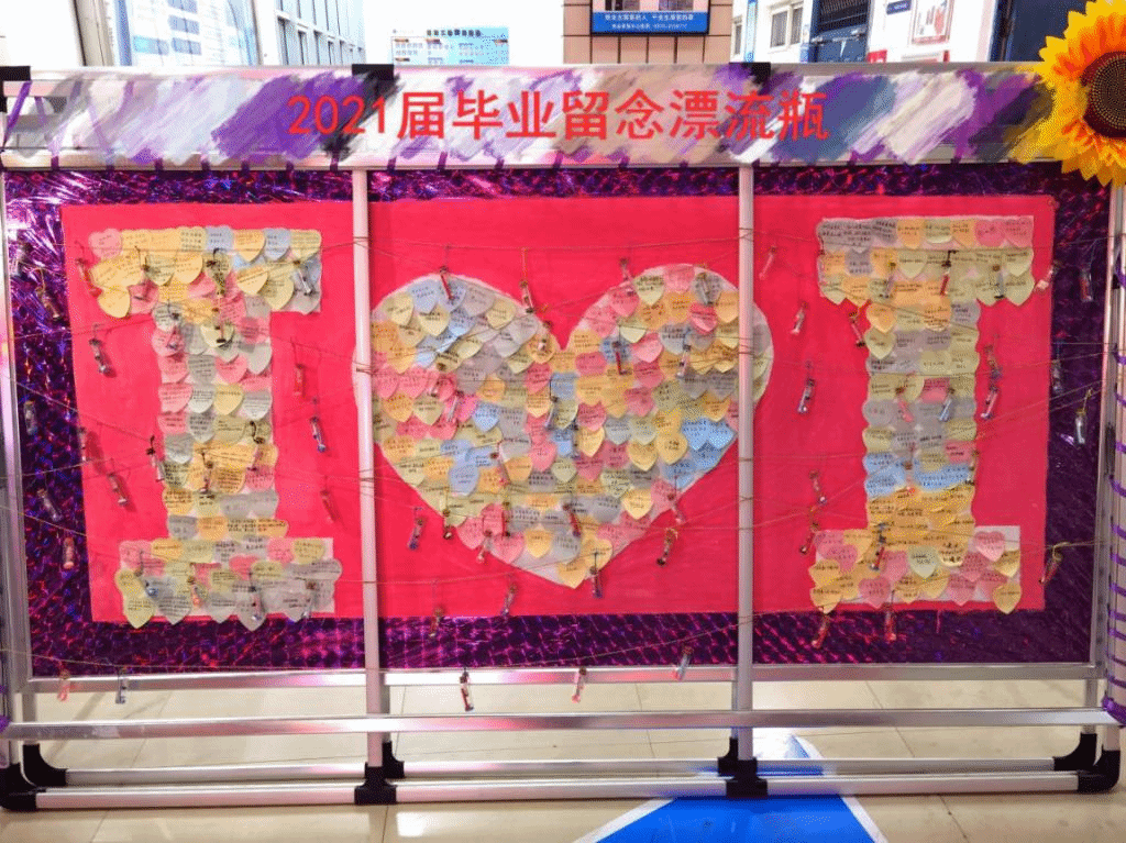 每个人小心翼翼地将纸条塞进漂流瓶中,挂在架子上。有的话,是对自己四年老员工活的总结;有的话,是对自己梦想的不断追求;也有的话,是对自己朋友最真挚的祝福。