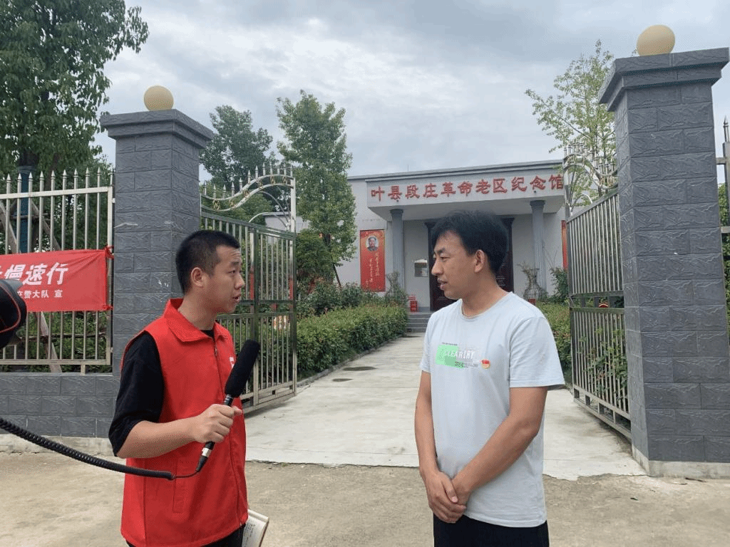 志愿者采访了段庄村驻村第一书记林书记。林书记表示,段庄村以叶邑镇精神红、产业红、生活红为抓手,党建引领,开展各项工作,传承红色基因,推动乡风文明建设,开展人居环境推动工程,大力发展村集体经济,使广大人民的生活水平不断提高。同时,作为一名党员,他深感骄傲和自豪,也深知自身责任和使命,听党话、跟党走,努力带领村民过上幸福生活。
