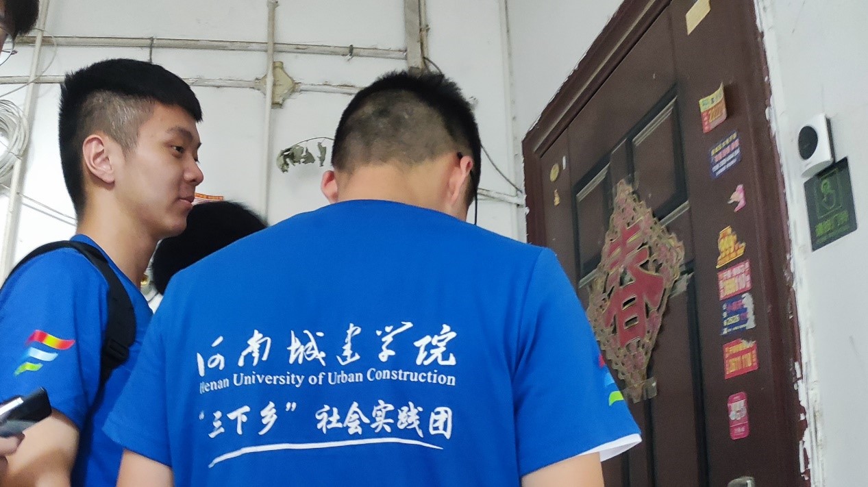 图为志愿者团队等待周爷爷开门(通讯员 司飞尧摄)