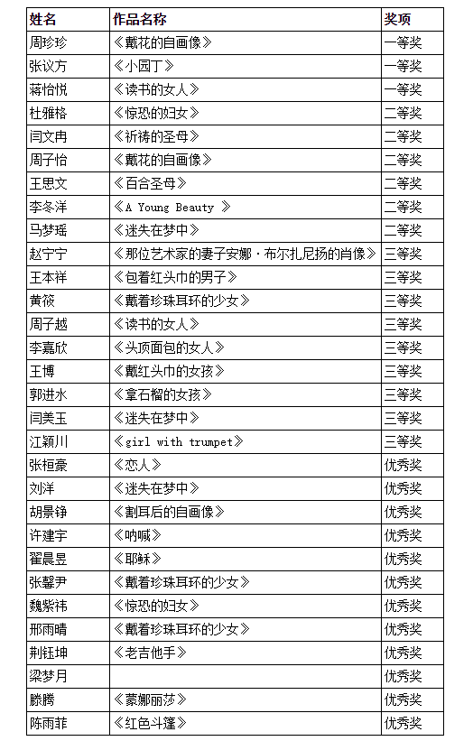 “世界名画模仿秀”活动刚一推出,就激起了同学们的参与热情,宿舍的床单,舍友的衣服、首饰,各种各样的化妆品等道具纷纷登场。而在这个模仿过程中,同学们恣意挥洒想象力与创造力,通过仔细观察名画,努力把名画中的每一点细节在自己的身上予以呈现,创造了一幅幅优秀的作品。本次活动一共收到62幅参赛作品,同学们发挥了十足的创造力,用心用情的给大家呈现了一场精彩的视觉盛宴。通过评比,最终评选出一等奖3名,二等奖6名,三等奖9名,优秀奖12名。