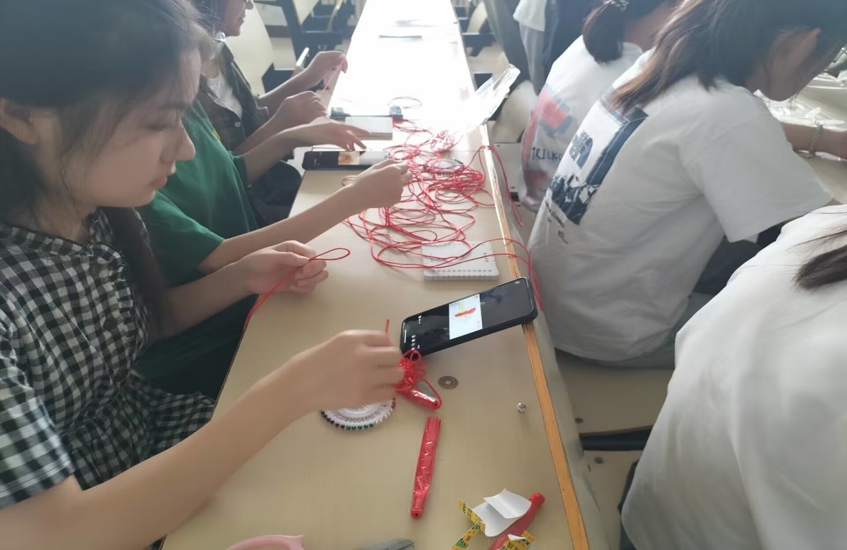 活动中,符明怡同学讲解了中秋节的由来,带领同学们纷纷动手揉面、包馅儿、封装,将制作好的月饼送给假期留校同学品尝,让浓浓的中秋祝福飘满校园。大家一起观看中国结的编织视频,跟着示范讲解团结协作完成制作,不仅感受了中国的传统文化内涵,也锻炼了自己的动手能力。活动最后,同学们展示了自己的作品,分享着自身的感悟,在镜头前向祖国送上真挚的祝福。