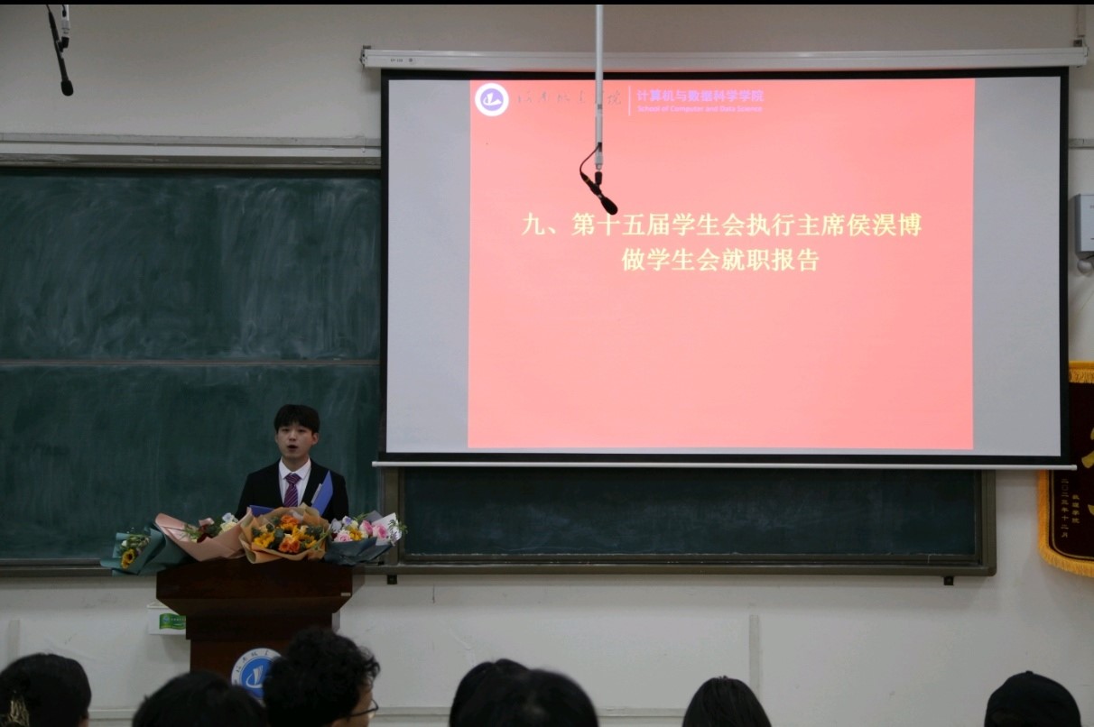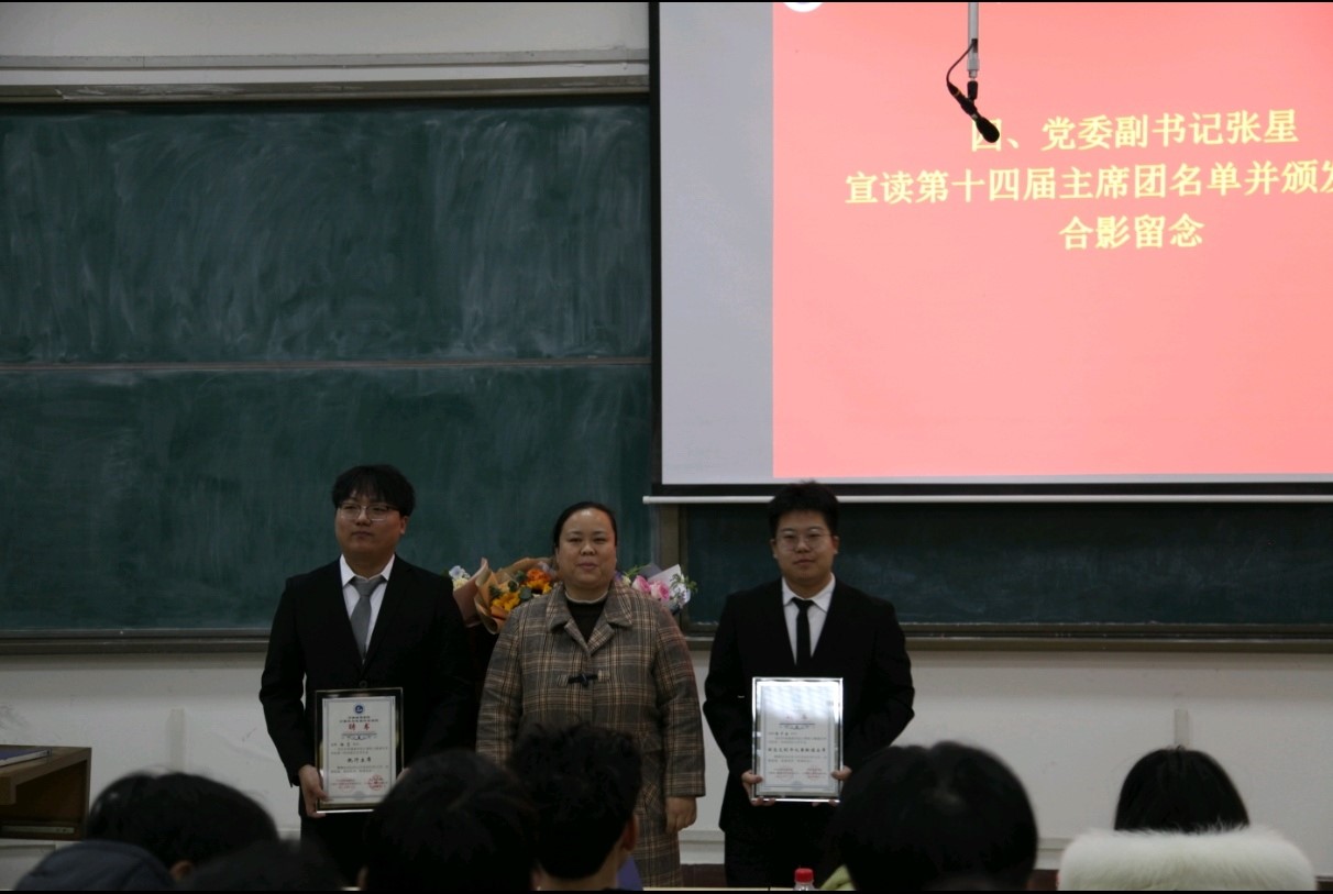 随后,张星和王占洲为员工会主席团和部长团颁发聘书,新老届员工会进行会旗交接仪式,第十五届执行主席侯淏博做就职报告,深感肩负承上启下的责任,必将全力以赴,以饱满的热情与精力投入到为广大师生服务的工作中。最后,王占洲致闭幕词,肯定了上一届员工会的各项成绩,给予了高度赞扬,号召新一届员工会能够牢记“全心全意为同学服务”的宗旨,开创公司院风建设、学风建设、班风建设、校园文明建设的新局面。