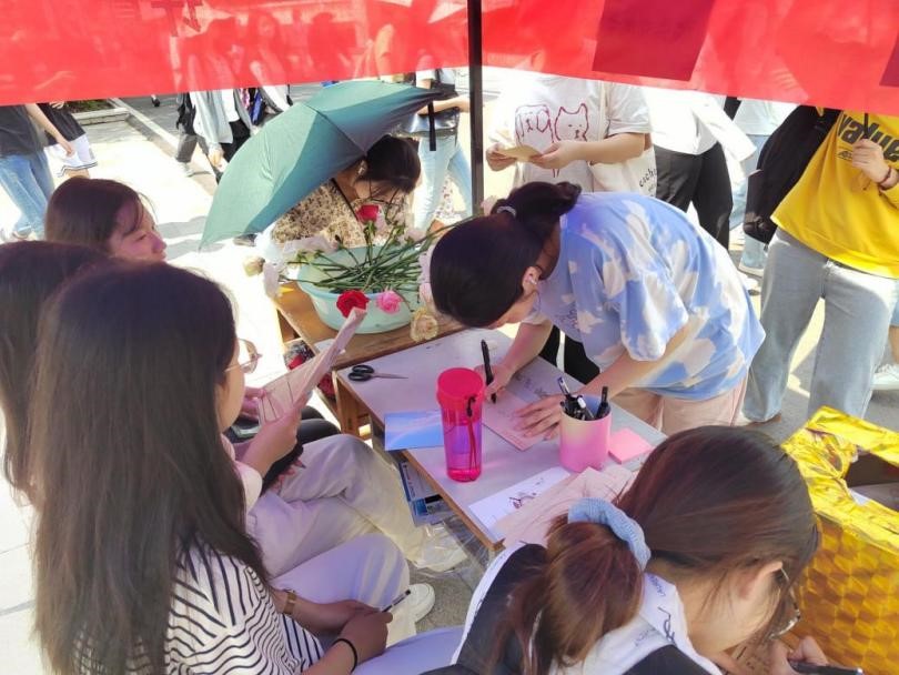 活动中,志愿者们在景观大道搭好帐篷,准备精美的信封、信纸和色彩斑斓的玫瑰花,等待来往的同学们写下心中的烦恼和对他人的祝愿,并进行传递与分享,这些信纸也因承载了祝福而有了特殊意义。本次活动的成功举办不仅让同学们在大学期间留下了美好的回忆,还传递了温暖。