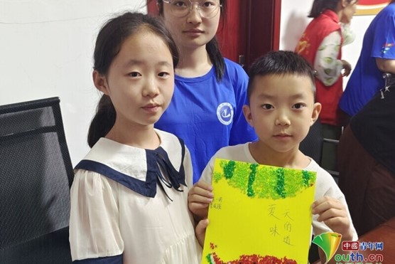图为孩子们展示制作的五谷画作品(袁晓湘 供图)